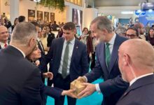 Una quesería de Santa Cristina de la Polvorosa entrega uno de sus quesos al rey en la feria Alimentaria de Barcelona