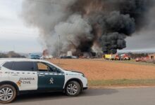 La Bañeza en alerta por «humo potencialmente tóxico» tras incendio en un almacén de neumáticos