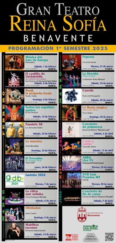 El Teatro Reina Sofía de Benavente, a través de su Concejalía de Cultura, presenta una programación variada para el primer semestre del año, con un total de 19 espectáculos. Incluyen teatro, música, ópera y musicales. Esta programación continúa con su compromiso de acercar la cultura a todos los públicos, desde jóvenes hasta familias.