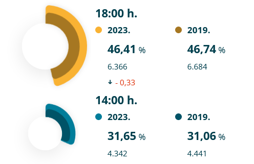 A las seis de la tarde, el 46,41% del censo electoral de Benavente ha pasado por las urnas cuando en los pasados comicios municipales en 2019 lo hicieron el 46,74%. Los datos facilitados por el Gobierno reflejan que son ya 6.366 los que han emitido su voto en los colegios electorales benaventanos, en el año 2019 a la misma hora fueron 6.684 personas. Benavente cuenta con un censo de 13.714 electores.