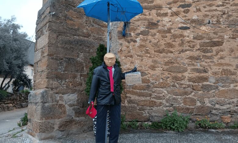 La originalidad en La Milla de Tera se hizo presente, un año más, en forma de mayo recreando al personaje de Trump. Y lo hicieron muy madrugadores, a la tarde, antes de la llegada de la noche y de las lluvias, por eso no dudaron en protegerlo con un paraguas.