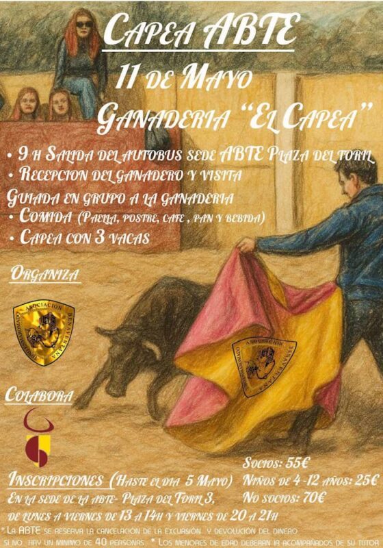 Las inscripciones estarán abiertas hasta el lunes 5 de mayo. Las personas interesadas pueden apuntarse en la sede de ABTE (Plaza del Toril, 3) en los siguientes horarios: