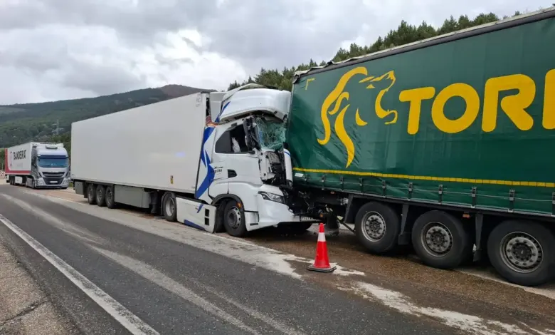 Un aparatoso accidente de tráfico se ha producido esta tarde en el kilómetro 95 de la autovía A-52, en sentido Puebla de Sanabria, dejando como saldo cuatro vehículos implicados, aunque sin heridos de gravedad. El siniestro ha involucrado dos camiones y dos turismos, afectando especialmente el depósito de combustible de uno de los vehículos pesados.