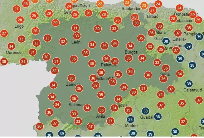 No obstante, según los datos de la Aemet, la temperatura máxima rondará los 36 grados en la mayoría de las provincias castellanoleonesas.