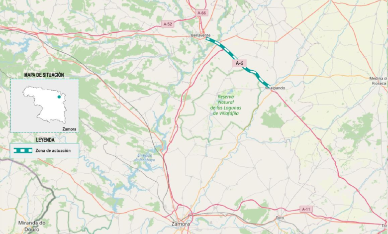 El Ministerio de Transportes, Movilidad y Agenda Urbana (Mitma) ha adjudicado, por importe de 11,45 millones de euros (IVA incluido), un contrato de obras de rehabilitación del firme de ambas calzadas de la autovía A-6, Autovía del Noroeste, entre los kilómetros (km) 239 y 261. Las obras se desarrollarán en los términos municipales de Villalpando, Cerecinos de Campos, Villalobos, San Esteban del Molar, Castrogonzalo y Benavente, todos en la provincia de Zamora.