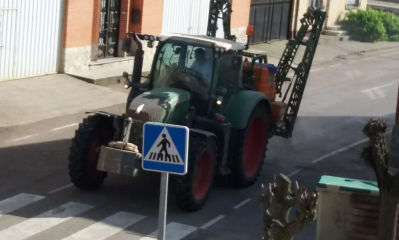 Esta tarde, dos agricultores de Fuentes de Ropel han salido a las calles con sus tractores para llevar a cabo las labores de desinfección relativa a la lucha contra el coronavirus.