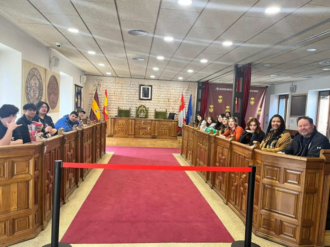 Un grupo de alumnos canadienses que se encuentran de intercambio en el Colegio San Vicente de Paúl – Benavente visitaron ayer el Salón de Plenos en la Casa Consistorial de la Plaza Mayor donde pudieron conocer de primera mano un poco de la historia y las tradiciones de nuestra ciudad de la mano de la alcaldesa Beatriz Asensio Boyano y la concejala de Educación, Mercedes Benítez Martínez, confirmaron desde el Consistorio.