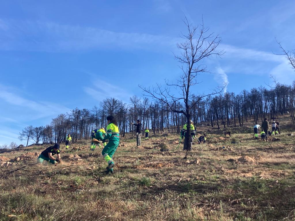 En el programa formativo se ha incluido también la visita a zonas devastadas por el fuego, como la de Ayoó de Vidriales, en cuya área de las inmediaciones de la ermita de San Mamés procedieron a la plantación de árboles.