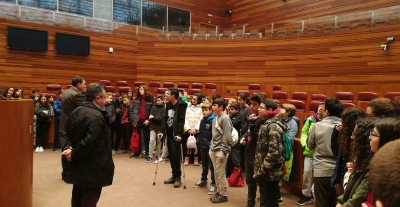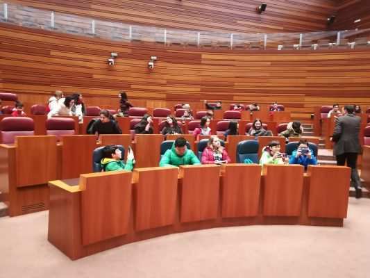 La visita fue organizada gracias a la invitación que la presidenta de las Cortes, Dña. Silvia Clemente, ofreció a los estudiantes el día que asistió al centro, con motivo de la presentación del libro «Mi primer León Felipe» que la fundación Villalar-Castilla y León ha editado, por el 50 aniversario del fallecimiento del poeta zamorano.
