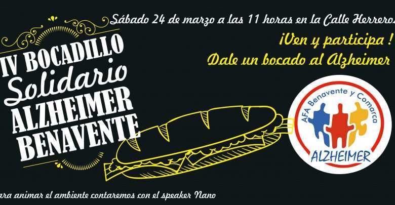 El 24 de marzo, la Asociación de Alzheimer Benavente y Comarca organiza el IV Bocadillo Solidario bajo el lema “Dale un bocado al Alzheimer” que se realizará a partir de las once de la mañana en la Calle Herreros de Benavente.