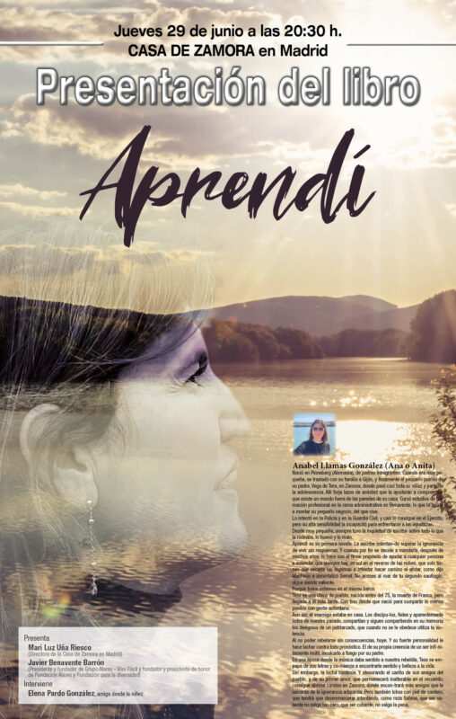 «Una novela reivindicativa, directa, emotiva, sutil». Así define Anabel Llamas González su libro «Aprendí» que será presentado el jueves 29 de junio, a las 20:30 horas, en la Casa de Zamora en Madrid.