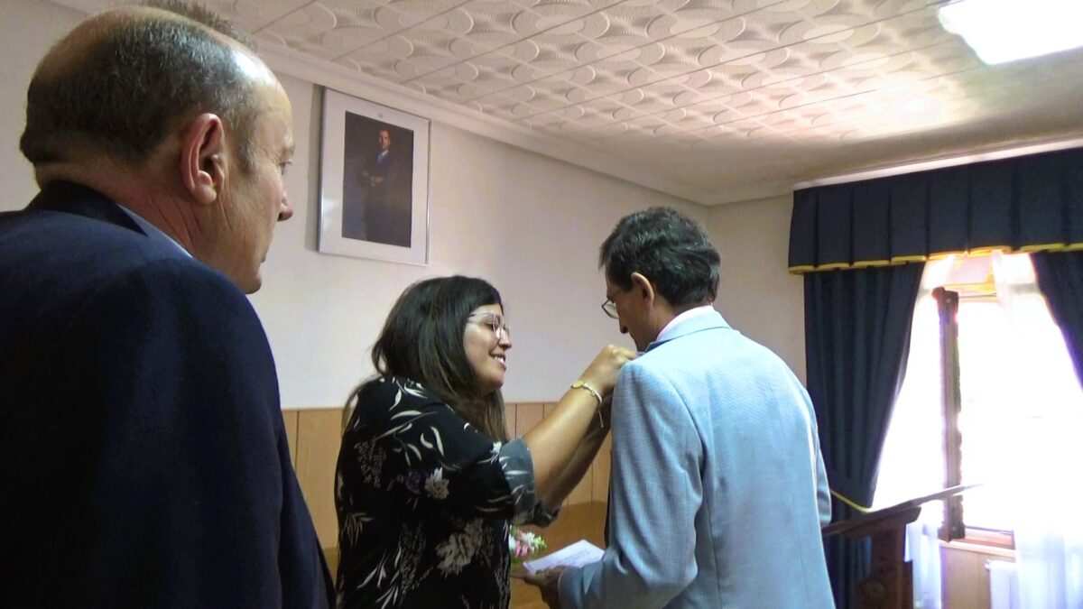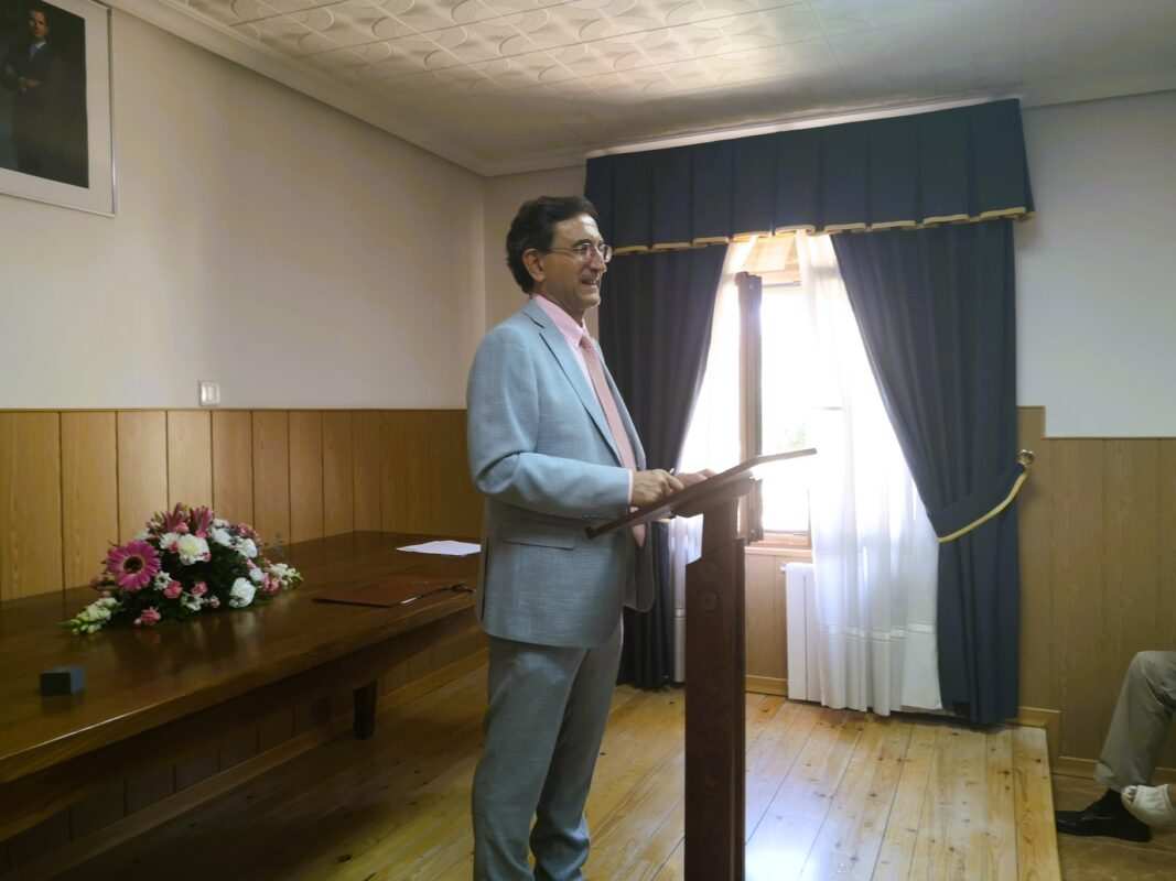 El homenajeado que se encontraba acompañado de su esposa y de sus predecesores en la alta distinción municipal, Mayte Martín y Juan Dúo, así como de los miembros de la corporación, el juez de paz, la secretaria municipal, Beatriz Asensio, los ex alcaldes de La Torre del Valle y Matilla de Arzón y el párroco José Maria Velicias, resaltaba en su intervención el enorme agradecimiento y orgullo al recibir la distinción honorífica de Pobladura del Valle aludiendo a los orígenes del emblema que representa la distinción honorífica, el serbal, identificándolo con los valores de los antiguos colectivos societarios. «Las varas y cayados de los druidas estaban hechos de su madera y vosotros lo habéis convertido en manifestación de reconocimiento y afecto», señalaba Ángel Macho ante un aforo complacido. No quiso dejar en el olvido a quien fuera una de las artífices en la consecución del ejecutado proyecto del vial entre Pobladura y Matilla, la ingeniera del Ministerio de Agricultura, Beatriz Pino, a la sazón directora de obra de la mejora de este camino demandado años y años por vecinos de ambos municipios y por los propios regidores.