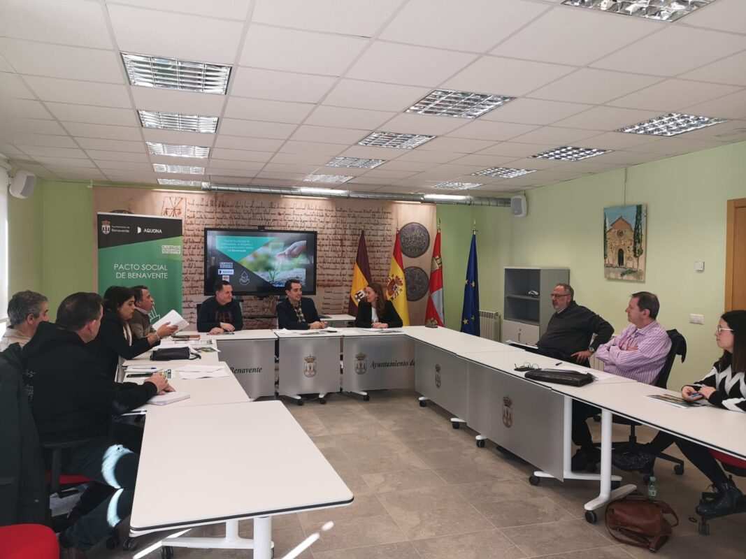 La empresa Aquona liderará en Benavente, en colaboración con el Ayuntamiento, un Pacto Social por la Solidaridad, el Empleo y la reconstrucción verde. Esta mañana se daban los primeros pasos con una reunión en la que participaron representantes de Aquona, del Ayuntamiento y agente sociales y representantes de instituciones. Será dentro de un mes cuando se ponga sobre la mesa el Plan de trabajo con afán de permanencia.