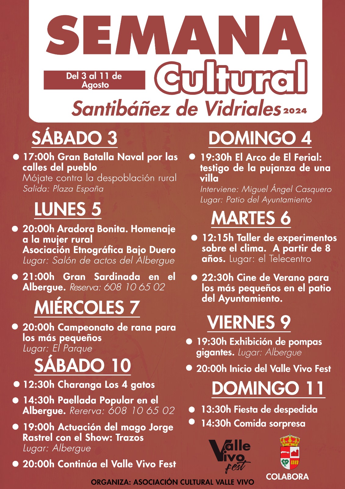 Al finalizar «Aradora bonita», Valle Vivo organiza una sardinada con reserva previa. Esta es una de las tablas del abanico programático de la Semana Cultural organizada en la localidad vidrialesa.