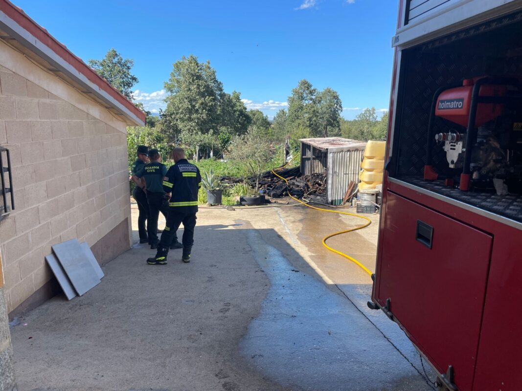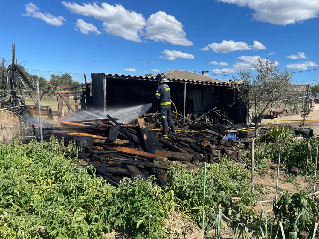 Una instalación bajo cubierto instalada en un patio de una vivienda de la localidad de Villadeciervos ha ardido pasadas las cinco de la tarde sin que se produjeran daños personales.