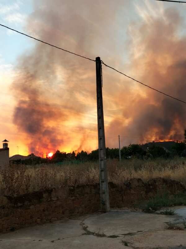 Las densas columnas de humo se divisan a kilómetros, señalando por parte de algunos vecinos que arde Vidriales y en algunas zonas ya se aprecia dificultad para respirar, como acaba de señalar en estos momentos un vecino de Fuente Encalada a punto de cerrar todas las ventanas de casa.