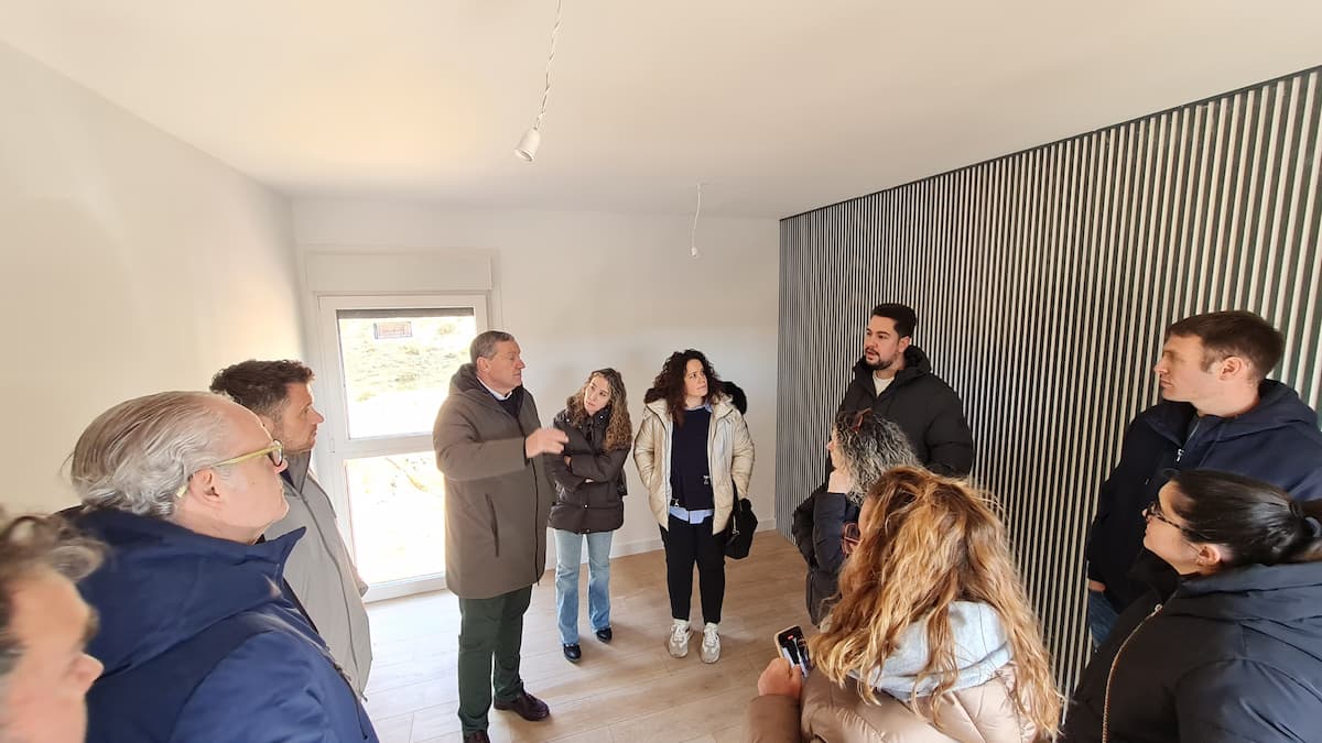 El proyecto que han visitado consiste en siete viviendas unifamiliares adosadas construidas mediante sistemas industrializados, una fórmula que permite reducir plazos de obra y abaratar costes.