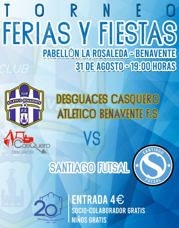 Este torneo enfrentará al Desguaces Casquero Atlético Benavente F.S y al Santiago Futsal en el Pabellón «La Rosaleda» para comenzar a calentar motores de cara a la temporada que cada vez se encuentra más cerca.