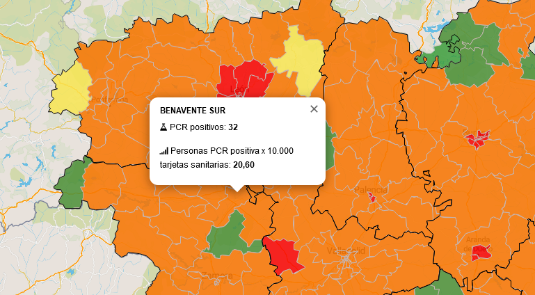 El mapa del coronavius de la provincia de Zamora continúa teñido de naranja con tan sólo dos zonas en verde.
