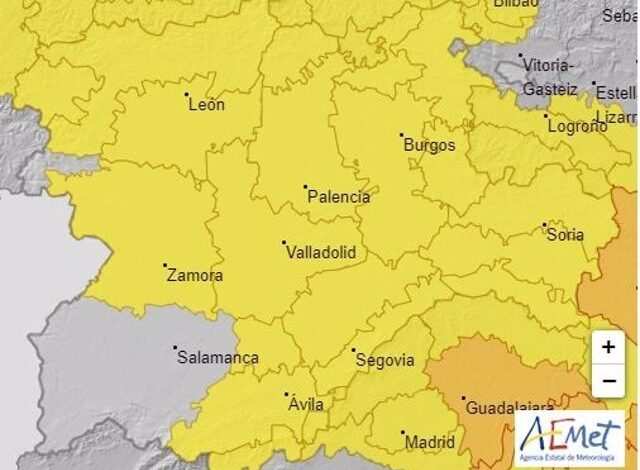 En general se prevén precipitaciones acumuladas de 15 milímetros en una hora en las zonas de meseta de Ávila, Burgos, León, Palencia, Segovia, Valladolid y Zamora, en el Sistema Central y Sur de Ávila, en la Ibérica de Burgos y Soria, en el Sistema Central de Segovia y Soria, en la Cordillera Cantábrica, Norte de Burgos y en Condado de Treviño, en la Cantábrica de León y El Bierzo y en la Cantábrica de Palencia.