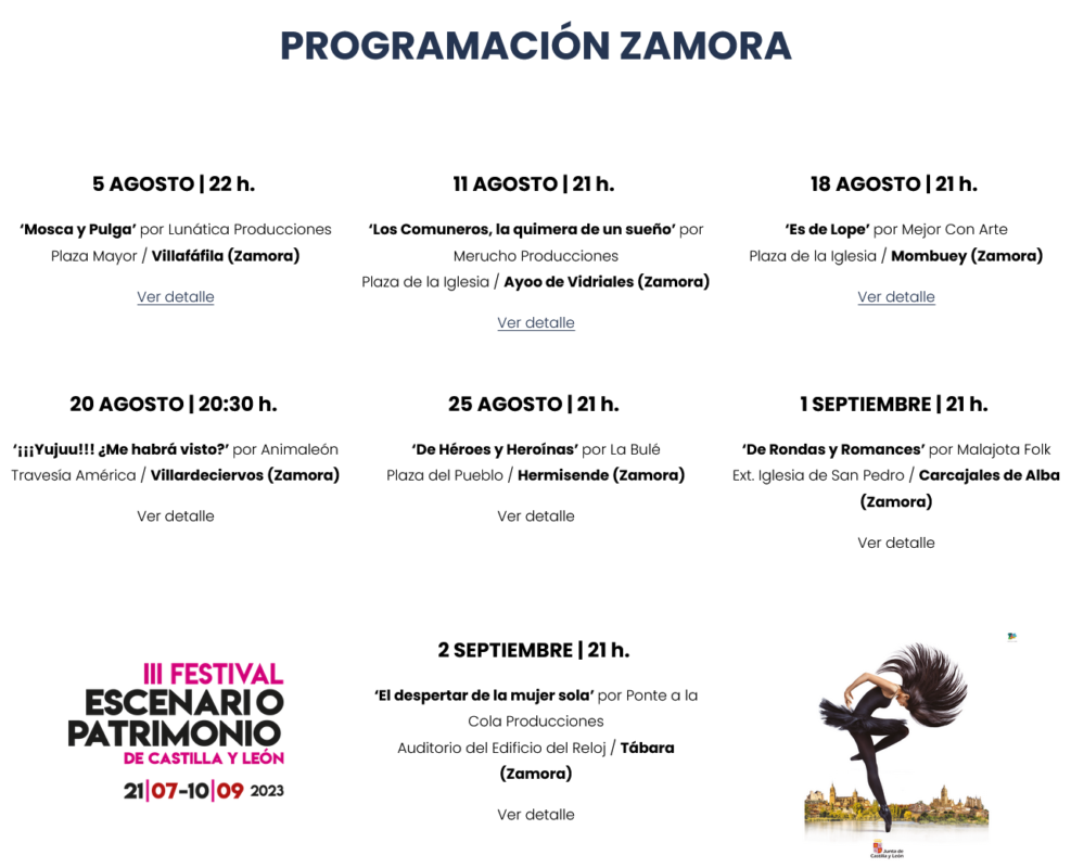 La programación completa se puede consultar a través de la página web www.escenariopatrimoniocyl.es