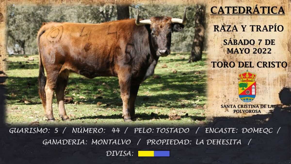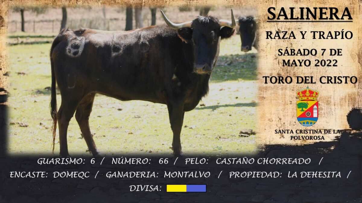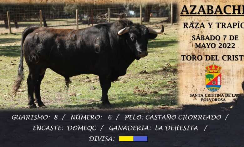 El toro de nombre «Azabache», de la ganadería Montalvo propiedad «la Dehesita», de encaste Domeqc, de pelo castaño chorreado, recorrerá el itinerario callejero de la localidad ribereña del Órbigo a partir de las seis de la tarde del próximo sábado 7 de mayo. De la misma ganadería se organiza la suelta de dos vacas, una de nombre «Catedrática», un animal de pelo tostado y encaste Domeqc, así como «Salinera» de pelo castaño chorreado y también encaste Domeqc. Al finalizar el encierro las calles de Santa Cristina se llenan de sonidos musicales con la charanga «los Chumacos».