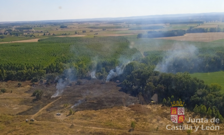 Se ha declarado un incendio esta tarde en Villanueva de Azoague, perteneciente a la comarca de Benavente. El fuego comenzó a las 17:09 horas y ha generado una pronta movilización de recursos para su control. En la actualidad, se han desplegado ocho medios de extinción para combatir las llamas: tres agentes medioambientales, dos cuadrillas terrestres, una autobomba y un hidroavión.