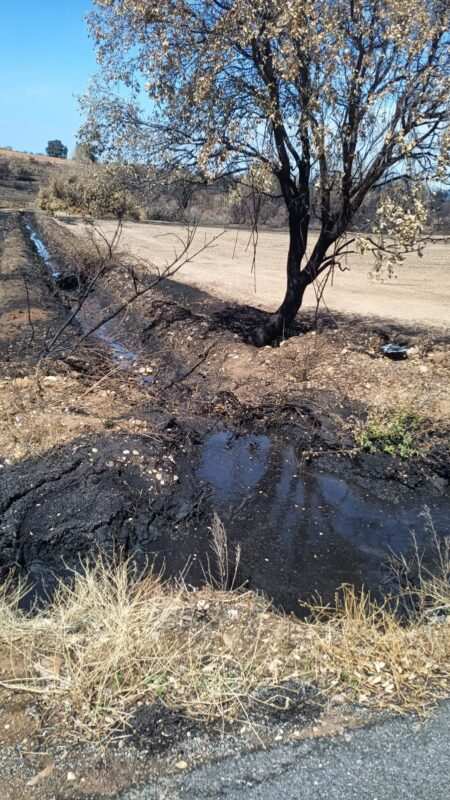 Las balsas de la ceniza arrastrada por la lluvia han anegado alguna que otra carretera como en el caso de la que enlaza Melgar de Tera con la autonómica de Camarzana a Ferreras. Precisamente el monte de Melgar, que atraviesa esta calzada de titularidad provincial, quedó arrasado por el gran incendio forestal de Sierra de la Culebra dejando cúmulos de cenizas de la vegetación quemada. Las lluvias han arrastrado las cenizas hasta las cotas más bajas, tanto en zonas de monte como en las cunetas y en la propia carretera.