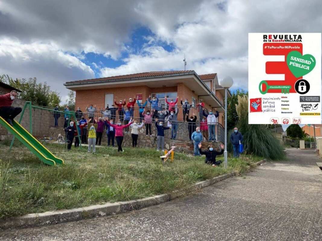 Frente al Centro de Salud Vidriales, en Santibáñez de Vidriales, casi el centenar de vecinos no quiso perder la ocasión de clamar por una necesidad básica, la asistencia del médico en el consultorio y no a través de la vía telefónica. Provistos de pancartas con los lemas: «Consultorios abiertos, pacientes atendidos», «Si yo te puedo atender en mi negocio, tu me debes atender en la Seguridad Social» y «Sanidad rural de calidad y digna», y otras más, los participantes realizaron una concentración en la que se leyó un manifiesto y un paro de cinco minutos atendiendo al lema de la organización: «Yo paro por mi pueblo».