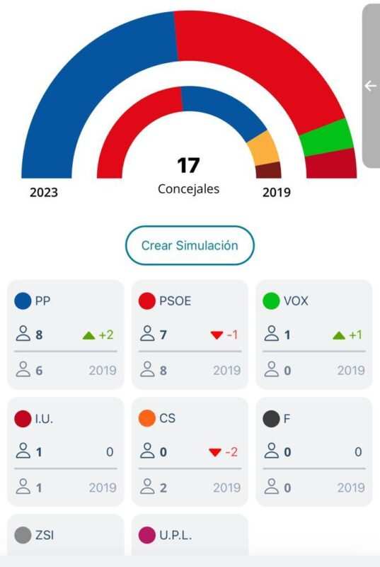 El alborozo general en la sede del PP de Benavente ya se manifestaba a medio escrutinio, llegando a registrarse a las 23:15 horas con el 93,03% escrutado, 8 concejales para el PP, 7 para el PSOE, 1 para IU y 1 para VOX, cuya fuerza política logra tener representación en el Consistorio benaventano. El resto de fuerzas políticas en liza no consiguen representación municipal.