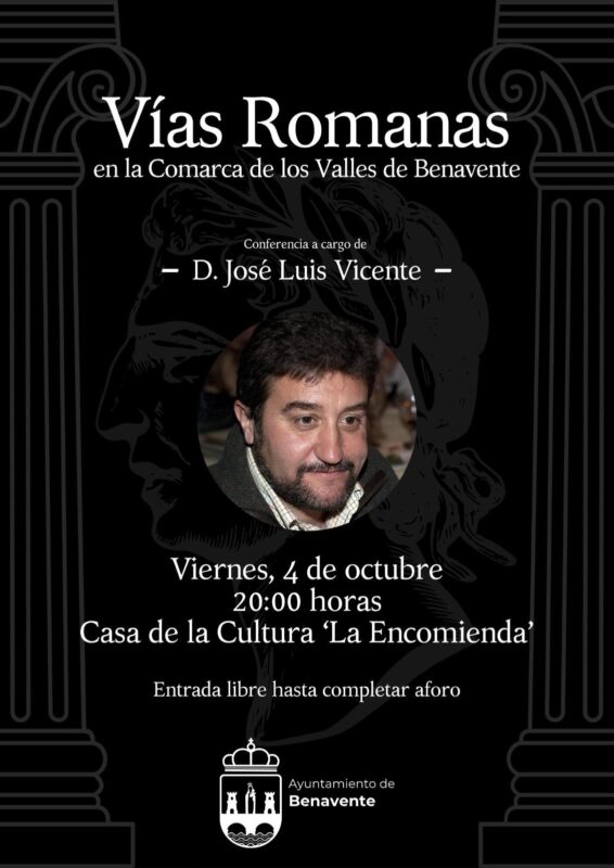 Esta tarde, el Ayuntamiento de Benavente organiza una interesante conferencia titulada «Vías Romanas en la Comarca de los Valles de Benavente», que será impartida por D. José Luis Vicente. El evento, que comenzará a las 20:00 horas en la Casa de la Cultura ‘La Encomienda’, es una cita ideal para aquellos interesados en la historia y el patrimonio de la región.