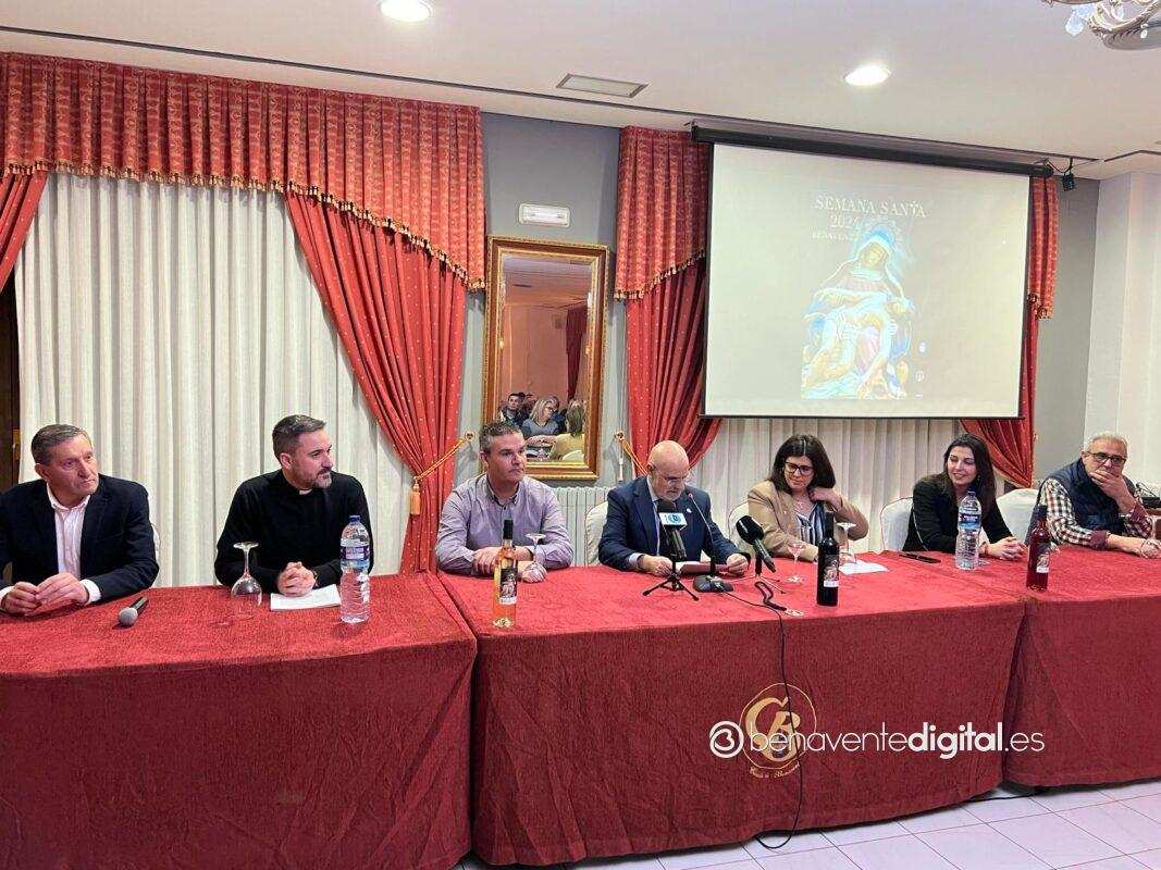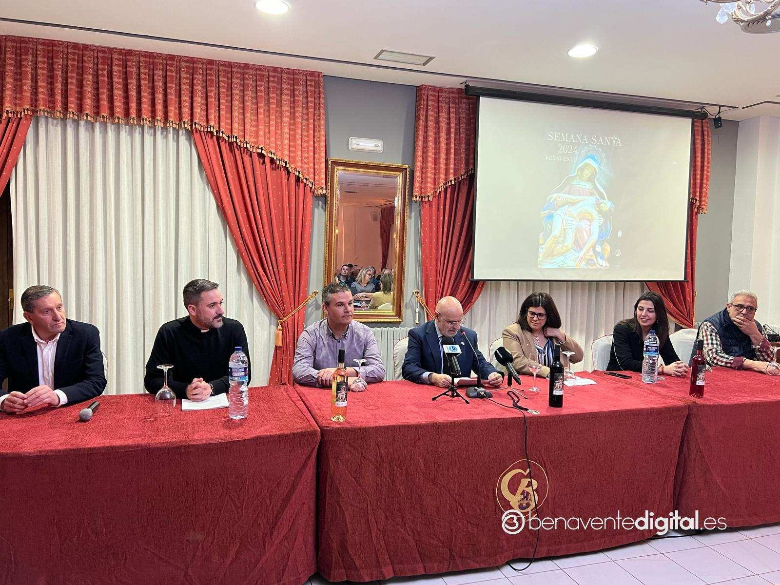 El Círculo de Benavente ha acogido en la tarde del jueves 15 de febrero la presentación del cartel de Semana Santa 2024. La obra, llevada a cabo por David Parra García ha sido presentada en un acto dirigido por Paulino Galván Morán, presidente de la Junta Pro Semana Santa de Benavente y por el sacerdote Francisco Ortega Vicente. El resto de la mesa lo ocupaban diversas autoridades municipales, entre ellas la Alcaldesa, Beatriz Asensio o la concejala de cultura Mercedes Benítez.
