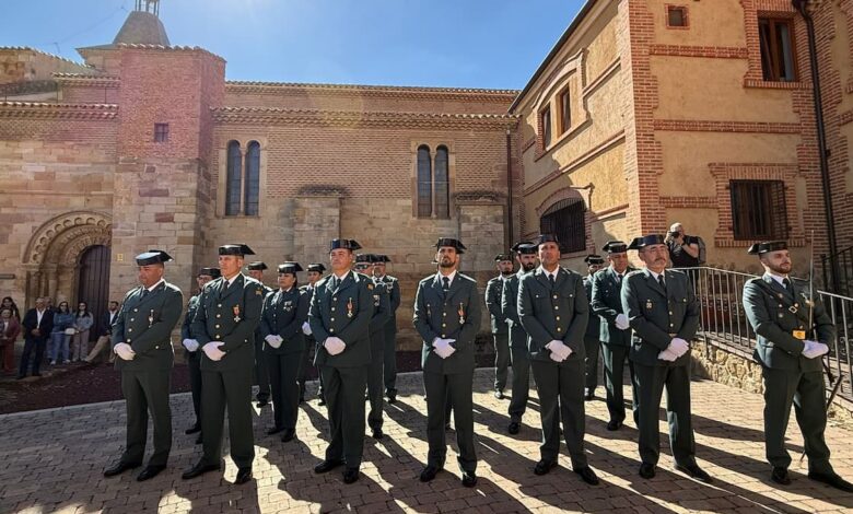 A continuación, las autoridades, miembros de la Guardia Civil, representantes institucionales y numerosos vecinos se trasladaron hasta el patio de las Ábsides, donde se celebró el acto institucional en honor a la patrona. Durante el mismo, se rindió homenaje a varios agentes por su trayectoria, compromiso y méritos profesionales, con la imposición de diversas condecoraciones:
