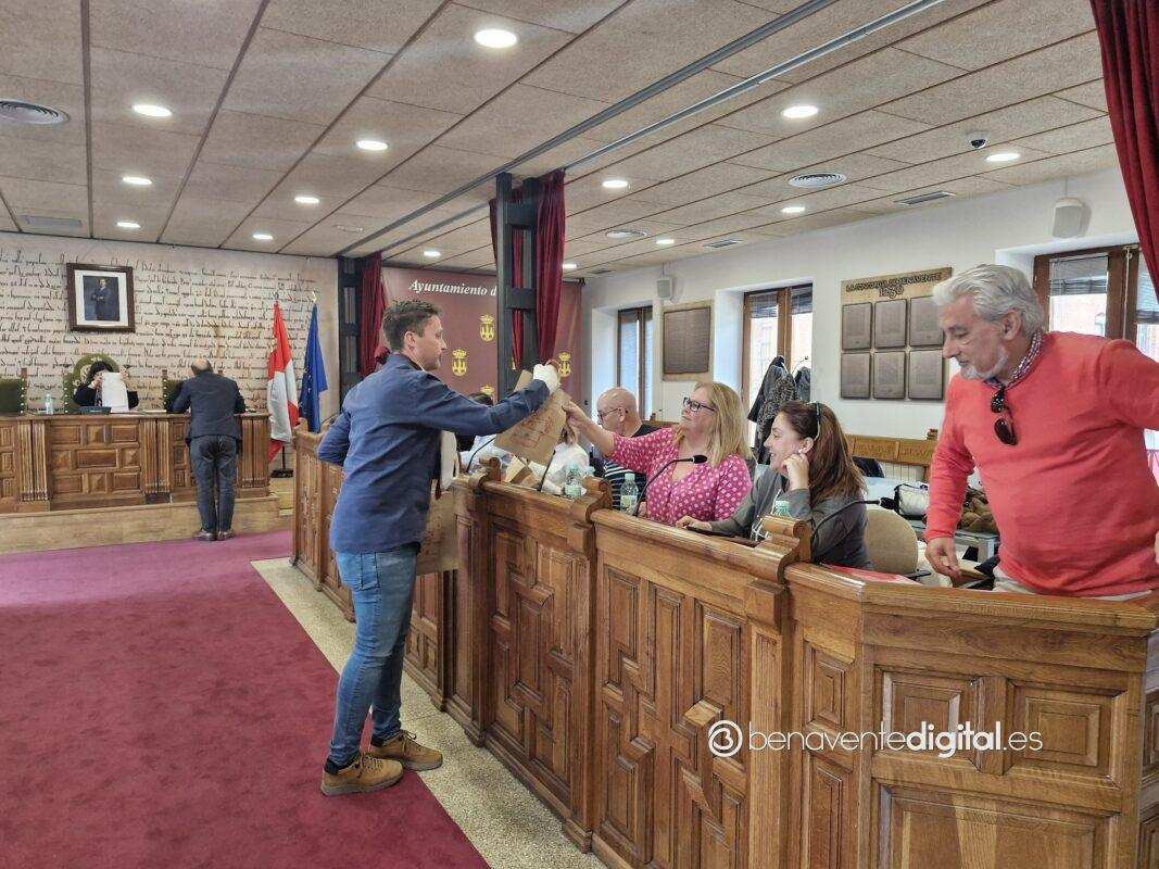 Al finalizar la sesión el concejal de Fiestas y Turismo, Alberto Lorenzo Colinas, hacía entrega al resto de corporativos de las invitaciones para las fiestas de la Veguilla, junto a un obsequio.