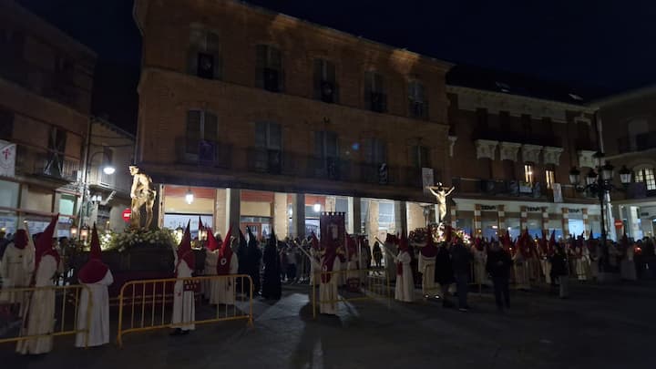 Una de las grandes alegrías fue ver nuevamente en la calle al Cristo de las Ánimas, que no pudo salir por primera vez el año pasado. Junto a él, procesionaron las imponentes imágenes del Flagelado y del Cristo de la Salud, custodiadas por los hachones que portaban los cofrades, creando una impresionante línea luminosa a través de la oscuridad de las calles.