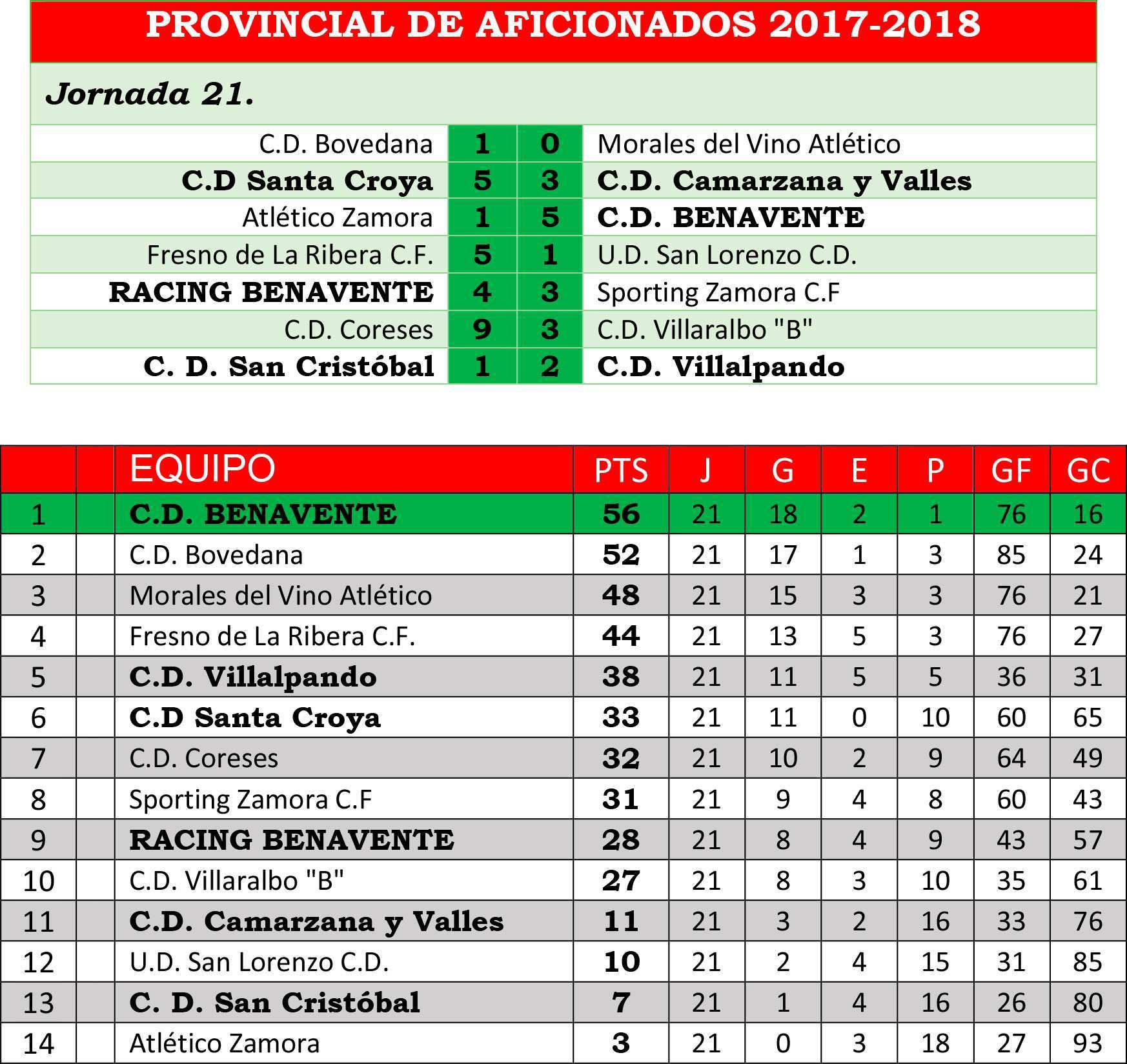 El Racing realizó varios cambios, modificó el sistema de juego y pasó a jugar más directo. De esta forma, los benaventanos fueron a por todas en busca de la victoria, llevando aún más peligro al área rival y disponiendo de varias ocasiones para empatar, hasta que Josico, que llevaba seis minutos en el campo, pusiera las tablas en el marcador en el minuto 87 al rematar dentro del área un pase de Víctor. Precisamente, sería el mismo Josico dos minutos después el que asistiera a Mario Bolaños para que rematara en el segundo palo y pusiera el 4-3 final en una victoria justa del Racing Club Benavente, que suma ya cinco partidos imbatido antes de visitar al C.D. Benavente el sábado en el derbi benaventano.