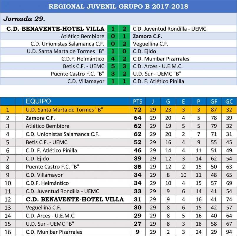 Una derrota dolorosa y que coloca a los juveniles del C.D Benavente quintos por la parte de abajo y con esa plaza serían equipo de provincial a falta de una jornada. Los benaventanos deberán de apelar a la épica y algo más para sacar la victoria de la jornada de este domingo a las 12,00 horas de los Anexos del Ruta de la Plata ante el Zamora C.F. Los zamoranos también se juegan mucho en este envite con lo que la victoria para los de Miguel Ángel Nuevo se antoja muy, pero que muy, imposible. Aún así son noventa minutos los que deberán de jugarse y el deporte lo que tiene es que cualquier rival puede ganar por inferior que sea.