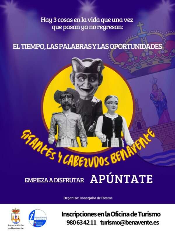 Desde la concejalía se invita a los vecinos a formar parte de la agrupación de figuras apuntándose en la Oficina de Turismo de Benavente.