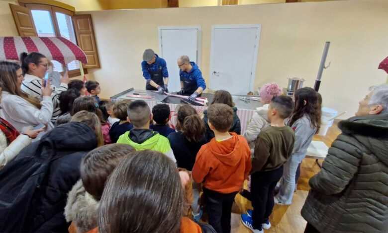 Entre las creaciones más destacadas, los niños tuvieron la oportunidad de hacer caramelos de fresa con un corazón dentro, una auténtica sorpresa dulce. También se elaboraron caramelos con la letra «B» en su interior, como homenaje a la ciudad, utilizando los colores de la bandera de Benavente.
