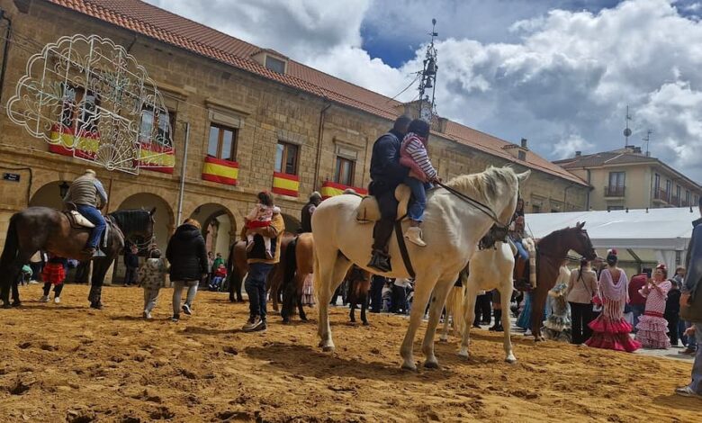 El paseo ecuestre arrancó desde el mercado de ganado, con menos participación de la prevista debido a las condiciones meteorológicas. Los caballos recorrieron la calle Herreros, rodeando la iglesia de Santa María y regresando por la Rúa hasta su entrada triunfal en la Plaza Mayor. Allí, una gran cantidad de público recibió con entusiasmo a los jinetes y no faltaron quienes se acercaron a hacerse fotos con los caballos para guardar un recuerdo de este día.