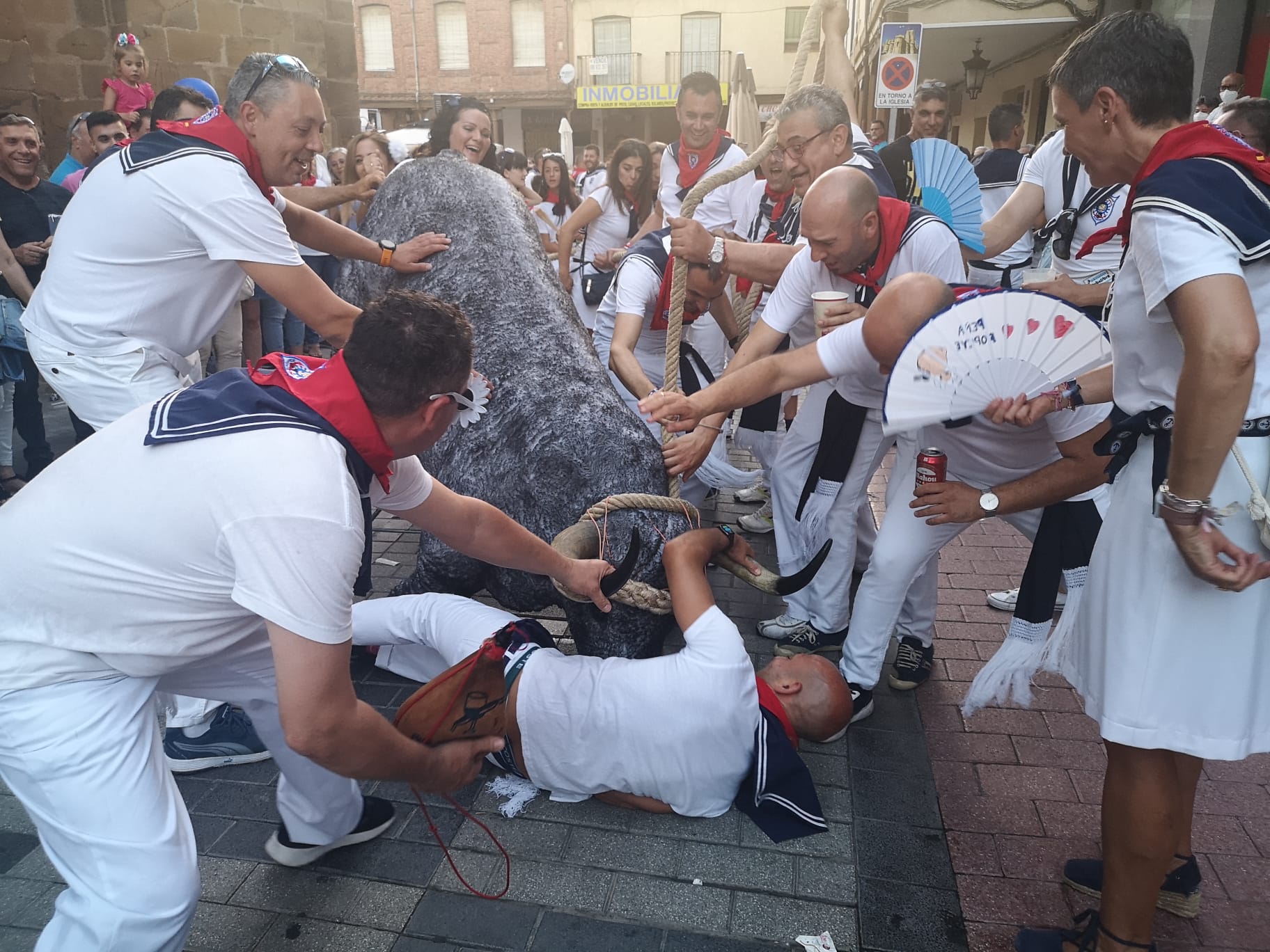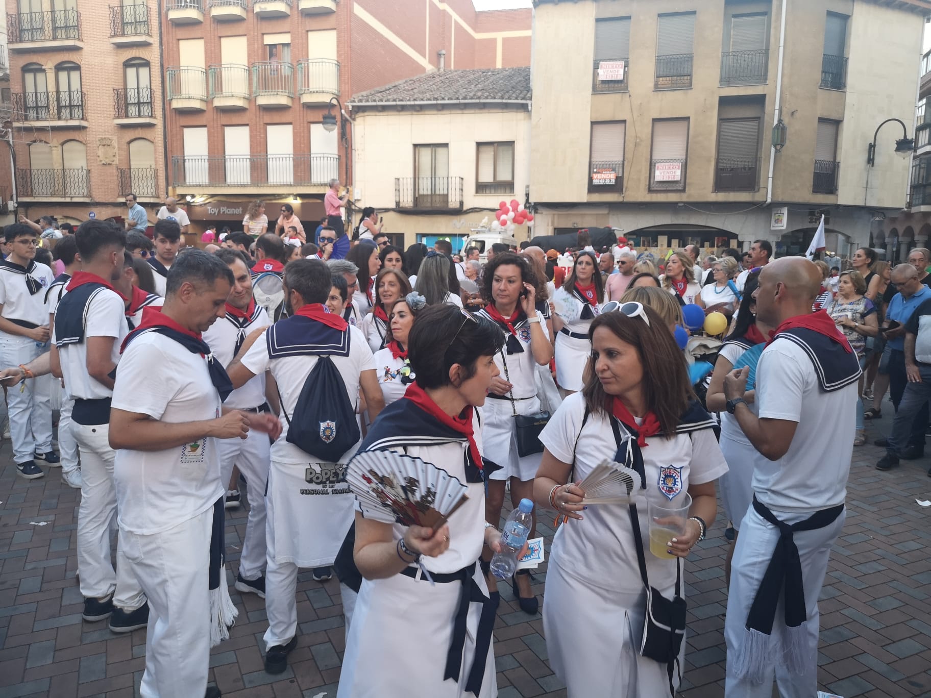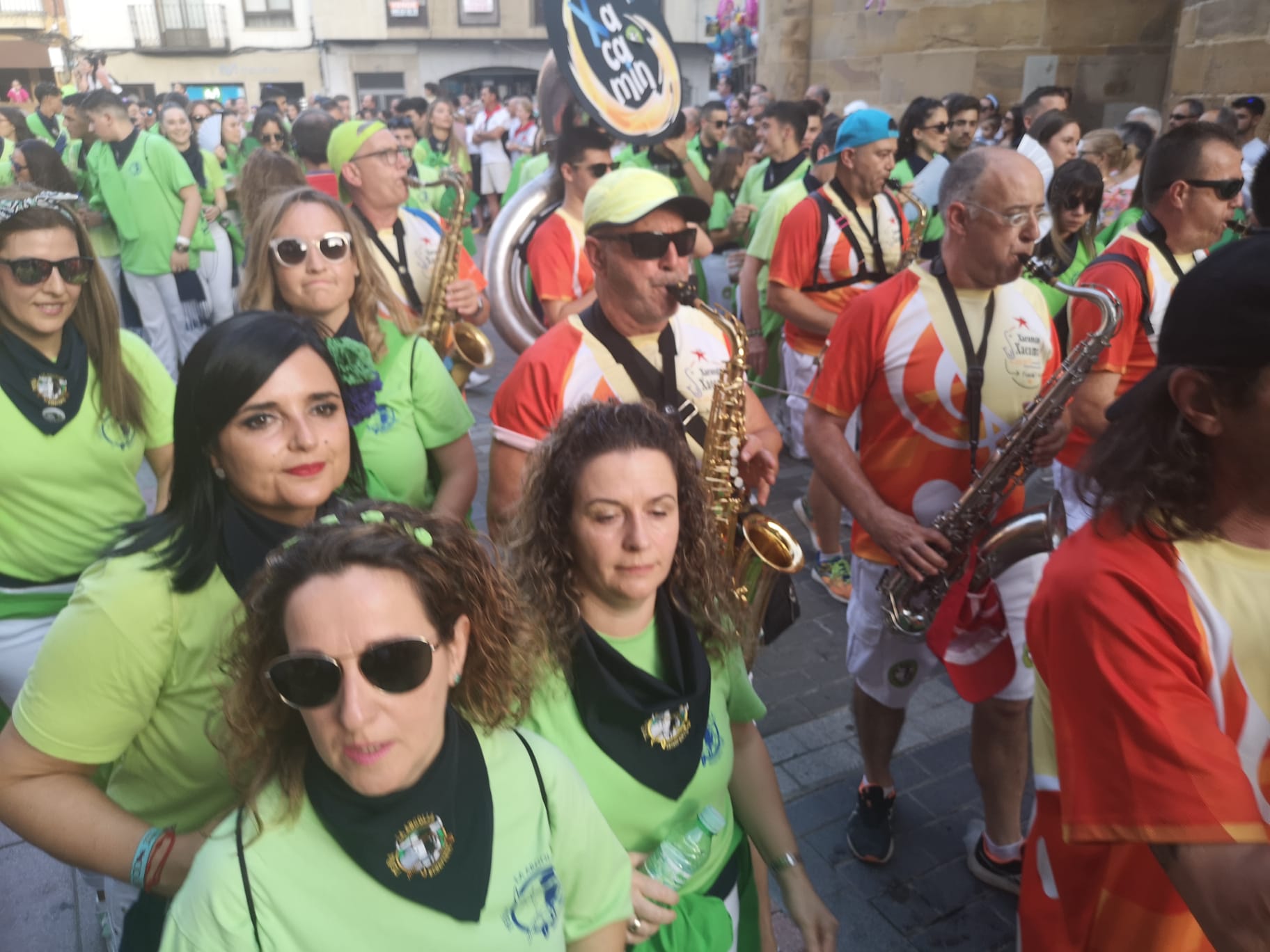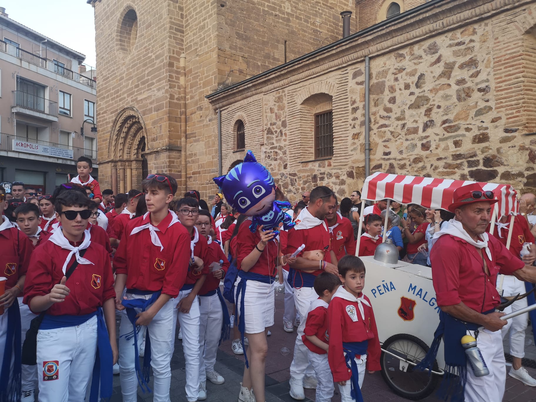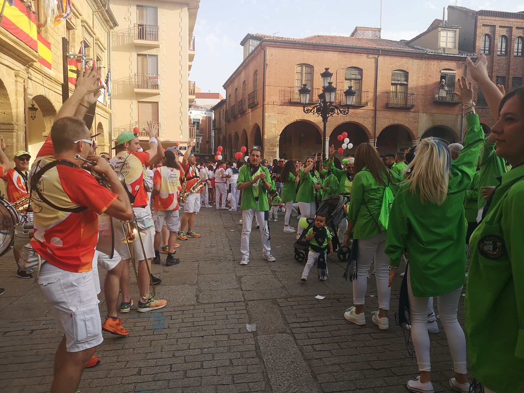 Todo es fiesta y de eso se encargan las peñas y sus charangas, para que la primera noche de las Fiestas de la Semana Grande, las fiestas del Toro Enmaromado sean inolvidables.