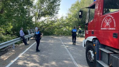 Un árbol de grandes dimensiones corta una carretera en Benavente