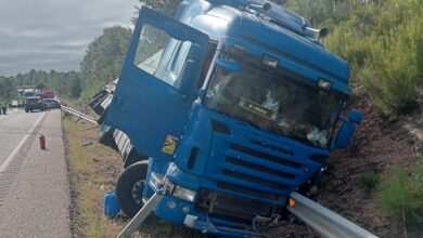 Triple colisión en la N-122: un herido y un camión volcado