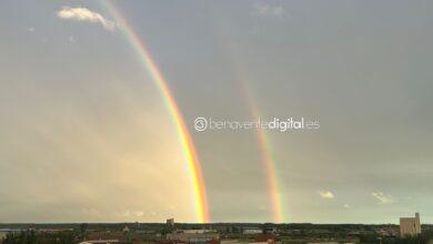 La lluvia de la tarde del lunes ha dejado un arcoíris doble adornando el cielo de Benavente. Este fenómeno óptico, que ocurre cuando la luz del sol se refracta en…