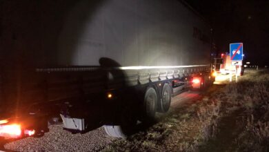 Un camión sufre un reventón en la carretera de Manganeses de la Polvorosa