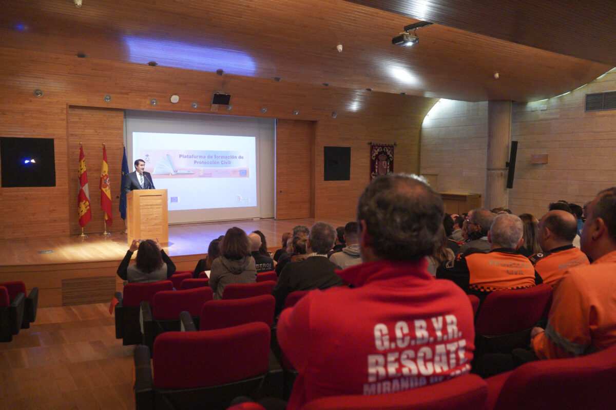 El consejero de Medio Ambiente, Vivienda y Ordenación del Territorio, Juan Carlos Suárez-Quiñones, ha presentado hoy, ante casi un centenar de profesionales y personas vinculadas a protección civil, bomberos, policías locales, voluntarios y otros colectivos de la Comunidad, la Plataforma ‘online’ de Formación de Protección Civil (FOPCYL), que a partir del próximo año dará soporte tecnológico a las actividades formativas que la Agencia de Protección Civil y Emergencias programa anualmente para ellos. La nueva plataforma ha supuesto una inversión de 450.000 euros, con financiación europea, que entrará en funcionamiento con el Plan de Formación 2023, a comienzos del próximo año, y se enmarca en el reconocimiento a la labor que desempeñan estos colectivos de protección ciudadana y emergencias en la sociedad.