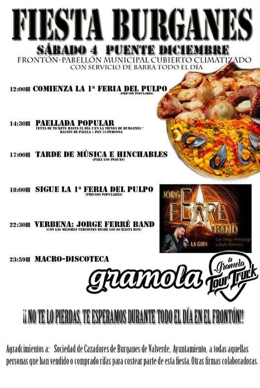 La Comisión de Fiestas de Burganes de Valverde organiza este sábado 4 de diciembre una jornada llena de animación en el pabellón deportivo. Desde el mediodía se organiza la I Feria del pulpo que da paso a la degustación de una paellada.