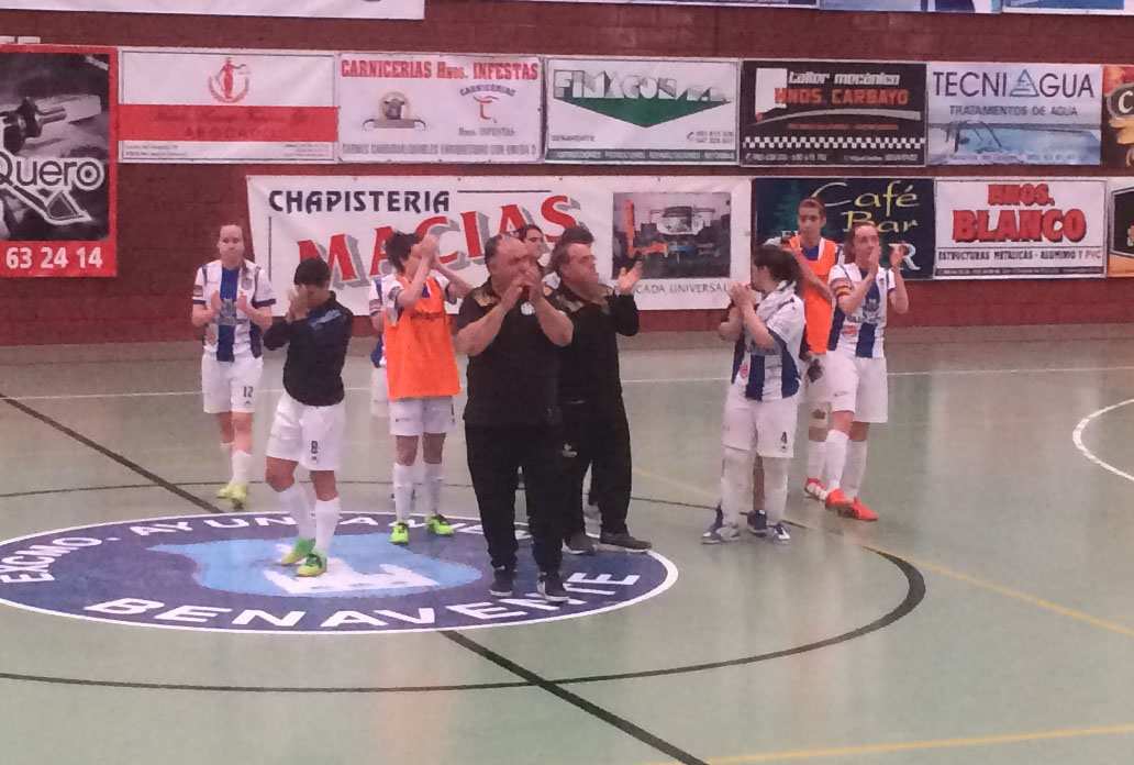 El juego iba cogiendo intensidad y las benaventanas cada vez se notaban más cansadas debido a que no daban nada por perdido y sabedoras de que ese era el plan que esperaba. Esa intensidad cargaba de faltas a las visitantes y en la primera oportunidad que tuvieron las cajeras de disponer de lanzamiento de doble penalti la pelota se iba dentro por mediación de Miri. Era el 2-1 y el descanso estaba a dos minutos. Un par de parada de Noelia y a descansar.