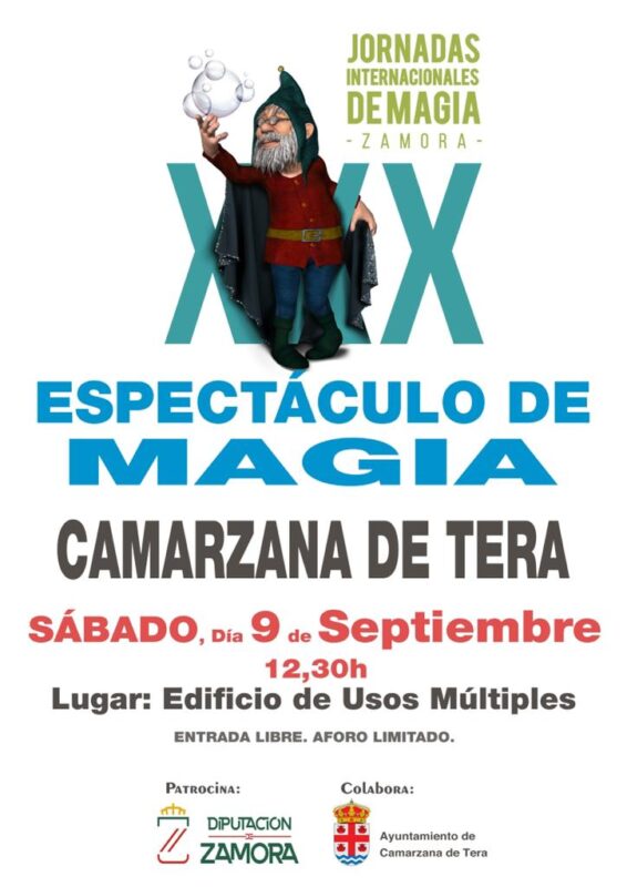 Rafael Titonelly pondrá en marcha su función en Camarzana de Tera el sábado 9 de septiembre a las 12:30 horas. Magia Viajera llegará también a Olleros de Tera el 9 de septiembre a las 17:00 horas de la mano de David Navares.