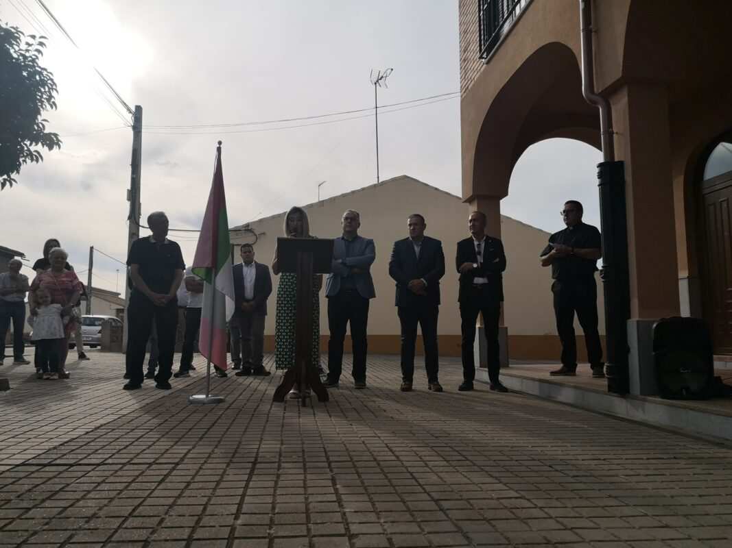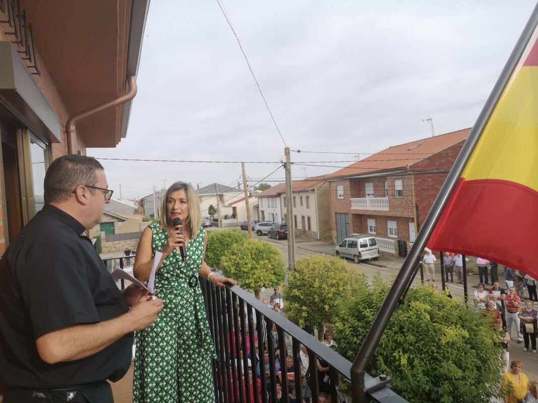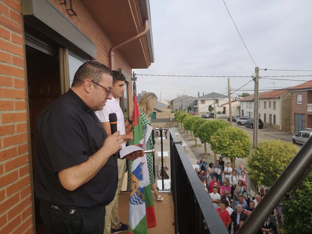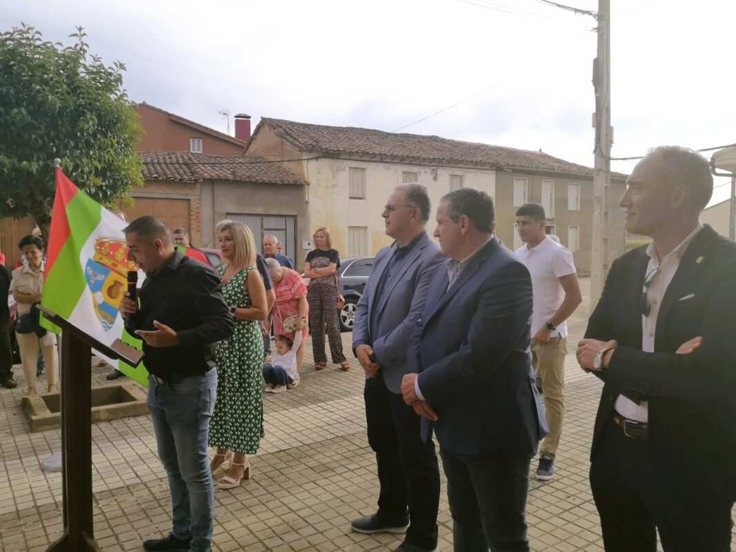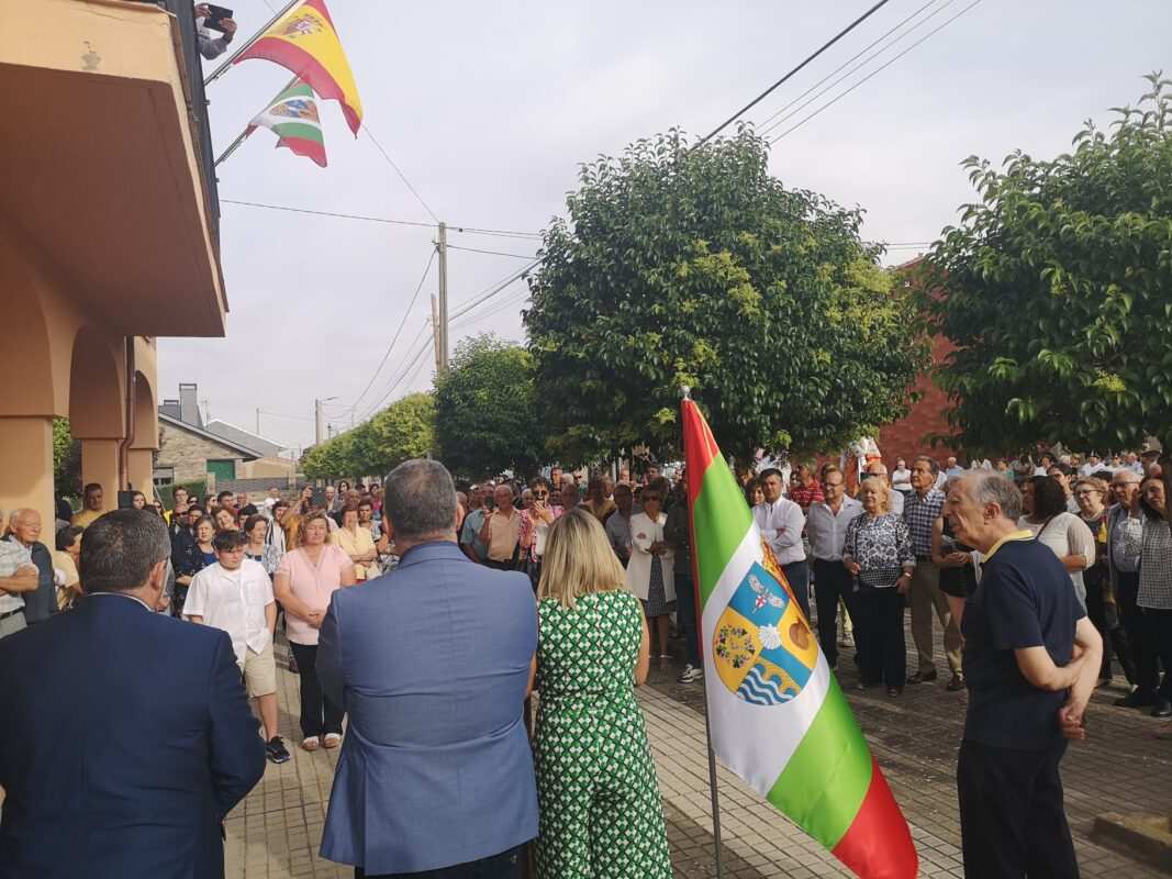 El solemne acto contó con una numerosa representación vecinal concentrada ante las puertas de la Casa Consistorial y encabezada por su alcaldesa Julia Fernández y los miembros de la corporación, así como el vicepresidente segundo de la Diputación, Jesús María Prada y los también diputados provinciales Javier Faúndez y Emilio Fernández. Del mismo modo, asistieron algunos alcaldes de la zona. Tras la bendición de la enseña por parte del párroco, Raúl Vega, se procedía a su izado y la presentación por parte del concejal Ricardo Arroyo de los nuevos emblemas adoptados por el municipio.